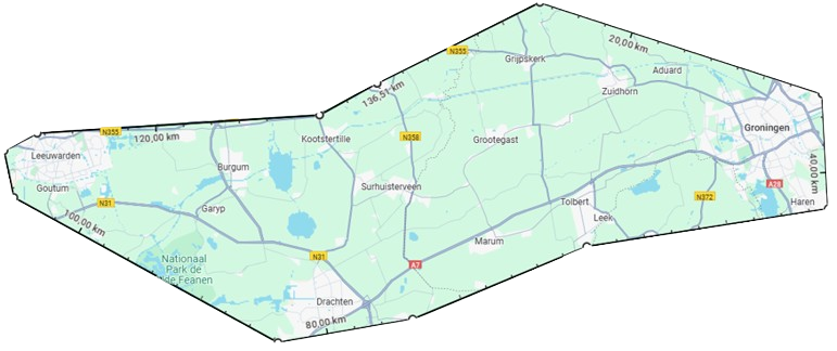 Binnen het werkgebied (Friesland en Groningen, zie kaartje hiernaast) wordt de familie desgewenst door mij persoonlijk bezocht om het beeldmateriaal op te halen en de wensen te bespreken. Zo kunnen zij in alle rust aangeven welke foto’s, sfeer en muziek belangrijk zijn, zodat de fotomontage precies de juiste emotie oproept tijdens de uitvaart.